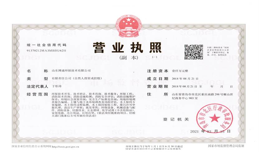 山東博通環(huán)保技術有限公司是一家專業從事環(huán)保、安全、消防的多元化技術服務公司,公司致力于打造專業的技術服務團隊,立足青島,輻射山東,服務范圍涵蓋:環(huán)保技術開發(fā)、技術轉讓、技術咨詢、技術服務;環(huán)保工程;消防技術咨詢;消防設施檢測;消防安全評估;消防設施維護保養(yǎng);環(huán)境應急預案咨詢;安全生產標準化咨詢;場地環(huán)境調查報告編制,土壤與地下水環(huán)境調查及風險評估,水土保持方案編制,水土保持過程監(jiān)測,水土保持驗收工程,排污許可申報代理,清潔生產審核;...